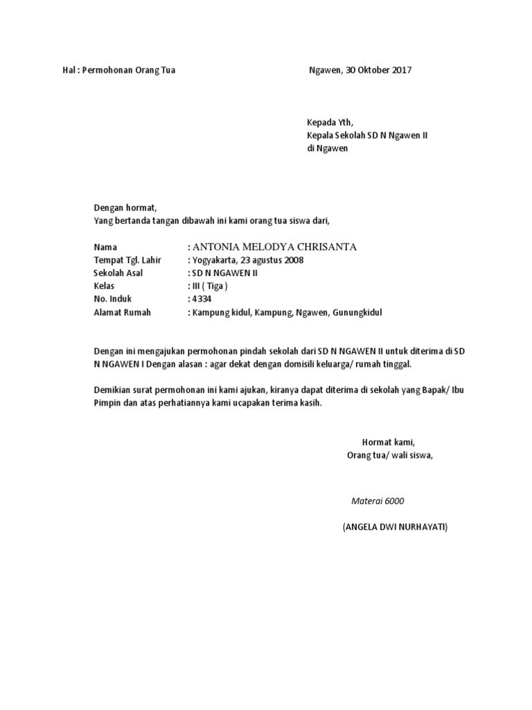 Surat Permohonan Pindah Dari Orangtua Pdf